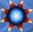 Light blue, med blue, med-dark blue, dark blue, purple, black, dark red, red, orange, white.